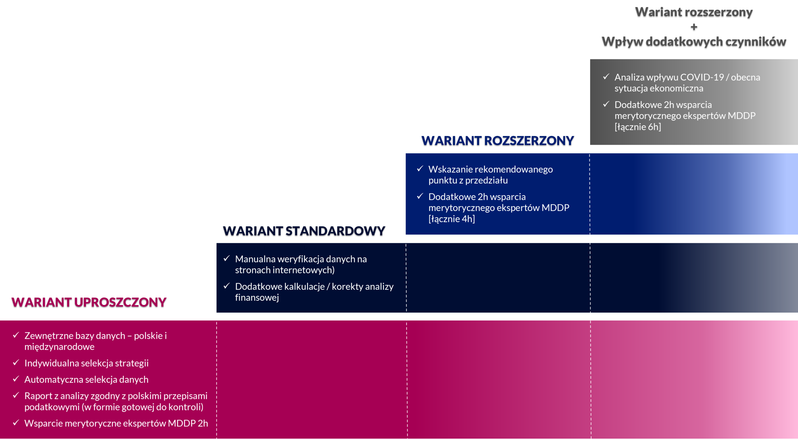 Ми гарантуємо відповідність аналізу польським та міжнародним правилам щодо цін на трансфер, включаючи вказівки OECD та рекомендації Форуму з цін на трансфер.