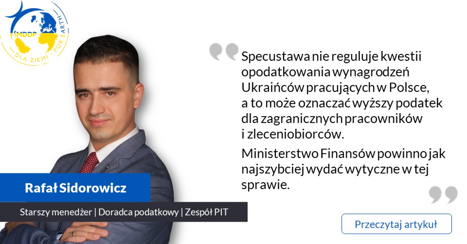 Niestety specustawa nie reguluje kwestii opodatkowania wynagrodzeń Ukraińców pracujących w Polsce, a to może oznaczać problemy dla przedsiębiorców i wyższy podatek dla zagranicznych pracowników i zleceniobiorców. Ministerstwo Finansów powinno jak najszybciej wydać wytyczne w tej sprawie, zwłaszcza w kontekście opodatkowania osób na umowach cywilnoprawnych. Dla zatrudnionych na tego rodzaju umowach szczególne znaczenie ma kwestia rezydencji podatkowej i jej udokumentowanie. W czasie wojny trudno zakładać, że zleceniobiorca będzie w stanie uzyskać ukraiński certyfikat rezydencji. Nie wiadomo też, czy zleceniodawca może pobrać od cudzoziemca oświadczenie, iż przenosi on swoje centrum interesów życiowych do Polski i na tej podstawie przyjąć, że zleceniobiorca jest już polskim rezydentem. Płatnicy nie mają pewności, czy odprowadzać zaliczki według skali czy 20-proc. ryczałt. Jeszcze bardziej skomplikowana staje się kwestia rozliczenia ulg. Ukraiński zleceniobiorca nie skorzysta np. z ulgi dla młodych.