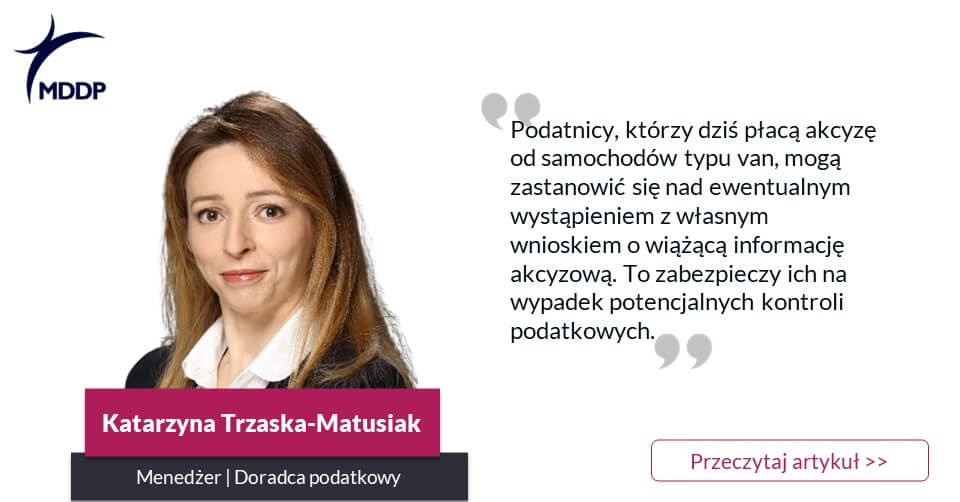 Podatnicy, którzy w przeszłości byli zobowiązani do zapłaty akcyzy od samochodów wielofunkcyjnych posiadających funkcje osobowo-towarowe, tzw. double cab in ian czy też brygadówki, będą mogli – po uprawomocnieniu się wyroków WSA i przeanalizowaniu dokładnie swoich spraw – starać się o zwrot akcyzy. Orzeczenia te nie będą oddziaływały wyłącznie na rozliczenia akcyzy w przeszłości, ale też na obecne. Podatnicy, którzy dziś płacą akcyzę od samochodów typu van, mogą zastanowić się nad ewentualnym wystąpieniem z własnym wnioskiem o wiążącą informację akcyzową. To zabezpieczy ich na wypadek potencjalnych kontroli podatkowych.