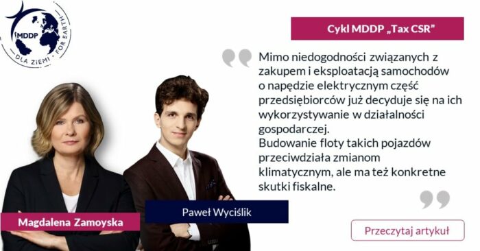 Dziś w kolejnym odcinku autorskiego cyklu ekspertów MDDP na łamach Dziennika Gazety Prawnej dotyczącego skutków podatkowych działań z zakresu CSR, analizujemy, czy firmy mogą liczyć na zachęty finansowe, w tym preferencje wynikające z prawa podatkowego, które mogłyby mieć wpływ na podjęcie decyzji o odejściu od pojazdów spalinowych, głównie aut osobowych, w działalności gospodarczej.