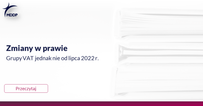 Grupy VAT jednak nie od lipca 2022 r. Zgodnie z regulacjami „Polskiego Ładu”, Grupy VAT mogłyby powstawać już od lipca bieżącego roku. Ministerstwo Finansów zaproponowało jednak przesunięcie terminu wejścia w życie przepisów odnoszących się do Grup VAT na 1 stycznia 2023 r. Co więcej, MF zaproponowało też zmianę w zakresie ewidencji, którą będą musieli prowadzić członkowie Grupy VAT. Owe zmiany wprowadzono w ustawie o automatyzacji załatwiania niektórych spraw…
