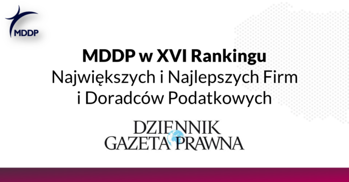 MDDP w XVI Rankingu Firm i Doradców Podatkowych Dziennika Gazety Prawnej Magdalena Marciniak wśród najlepszych doradców cen transferowych Mamy przyjemność poinformować, że Magdalena Marciniak, doradca podatkowy, partner i Szef Zespołu Cen Transferowych MDDP po raz kolejny została uznana za jednego z najlepszych doradców w kategorii cen transferowych w Rankingu Firm i Doradców Podatkowych Dziennika Gazety Prawnej. To już czwarty rok z rzędu, gdy Magdalena Marciniak znajduje się…