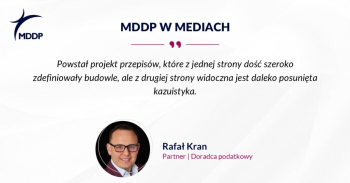Kolejna wersja zmian w podatku od nieruchomości. Rząd powinien się pospieszyć Nadchodzące zmiany w ustawie o podatkach i opłatach lokalnych przez długi czas były przedmiotem sporów i kontrowersji. Na jednym z najbliższych posiedzeń, rząd ma w końcu przyjąć projekt, w którym znajdą się nowe definicje budowli dla celów ustalania podatku od nieruchomości. Opublikowana niedawno trzecia wersja zmian nadal jednak budzi wątpliwości. Jak zauważa Rafał Kran, partner, doradca podatkowy w MDDP,…
