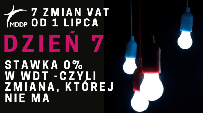 7 ZMIAN VAT: WDT – zmiany dotyczące warunków zastosowania 0% stawki VAT