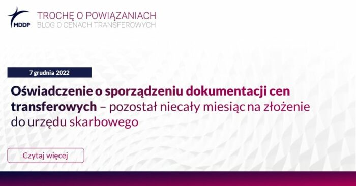 Tylko niecały miesiąc pozostał do wypełnienia terminów raportowania z zakresu cen transferowych. Jednym z obowiązków jest złożenie do urzędu skarbowego oświadczenia o sporządzeniu dokumentacji cen transferowych i rynkowym charakterze transakcji podpisanego przez członków zarządu spółki. Dla większości podmiotów termin ten mija bowiem już 31 grudnia 2022 r. Odpowiedzialność za podpisanie i złożenie oświadczenia spoczywa na osobach odpowiedzialnych za sprawy spółki tj. członkach zarządu. W oświadczeniu tym członkowie zarządu są zobowiązani do potwierdzenia…