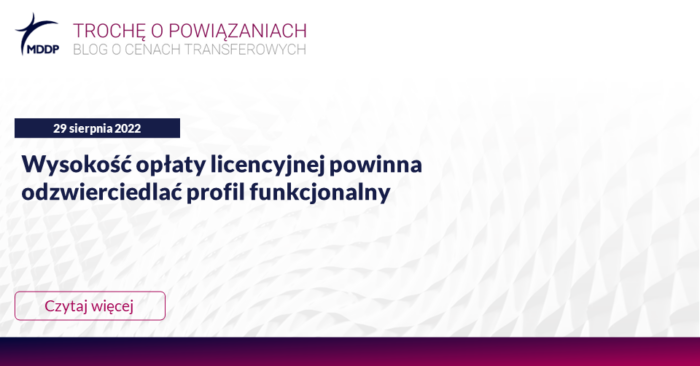 Wysokość opłaty licencyjnej powinna odzwierciedlać profil funkcjonalny Analiza funkcjonalna jest jednym z kluczowych elementów dokumentacji cen transferowych, umożliwiającym dokładne określenie profilu funkcjonalnego stron transakcji kontrolowanej oraz związanych z tym ryzyk. W konsekwencji, umożliwia ona ustalenie rynkowej wysokości należnego wynagrodzenia. Przykładowe zakwestionowanie przez organ podatkowy wynagrodzenia, odzwierciedlającego profil funkcjonalny, było przedmiotem wyroku WSA w Poznaniu z dnia 7 czerwca 2022 r. (sygnatura I SA/Po 100/22). Spółka…