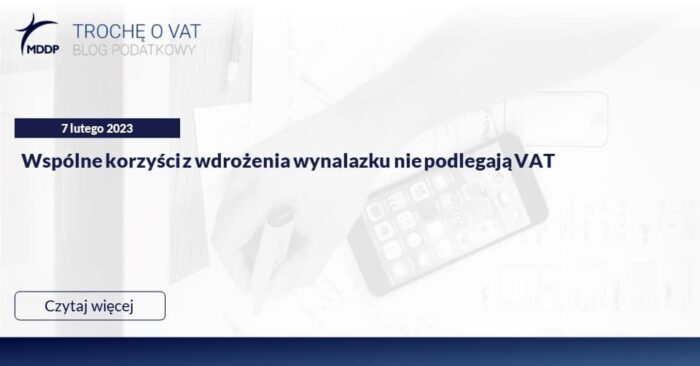 Wspólne korzyści z wdrożenia wynalazku nie podlegają VAT
