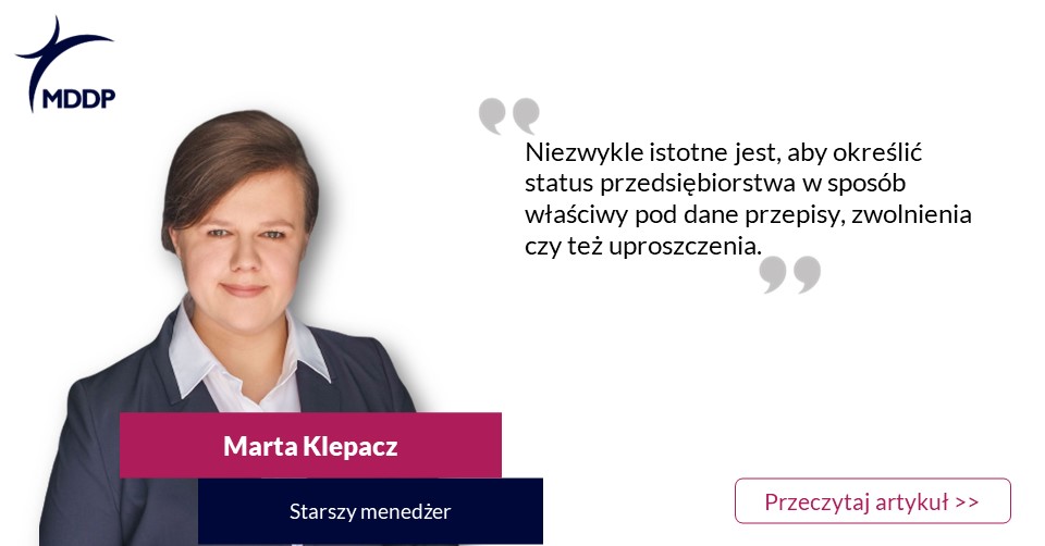 Dlatego też niezwykle istotne jest, aby określić status przedsiębiorstwa w sposób właściwy pod dane przepisy, zwolnienia czy też uproszczenia.