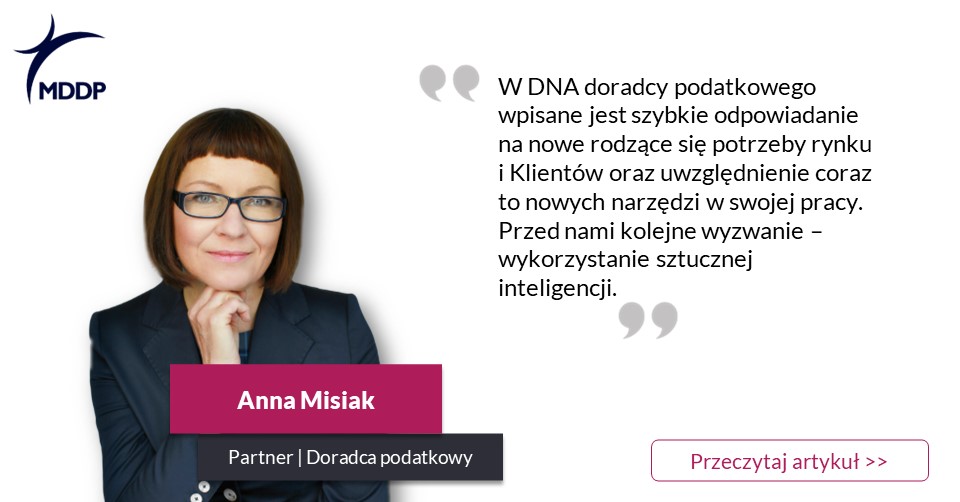Anna Misiak, przewodnicząca Mazowieckiego Oddziału Krajowej Izby Doradców Podatkowych, partner, doradca podatkowy w MDDP, zaznacza, że do największych wyzwań stojących przed doradcami podatkowymi należy rozwój nowych technologii.