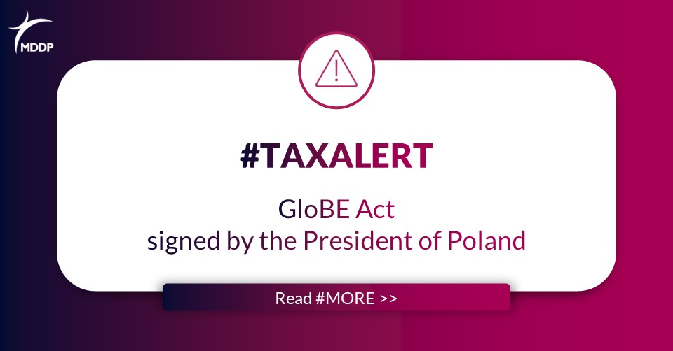 This Tax Alert does not constitute legal or tax advice. MDDP Michalik Dłuska Dziedzic i Partnerzy spółka doradztwa podatkowego spółka akcyjna is not responsible for the use of the information contained in the Alert without prior consultation with legal or tax advisers.