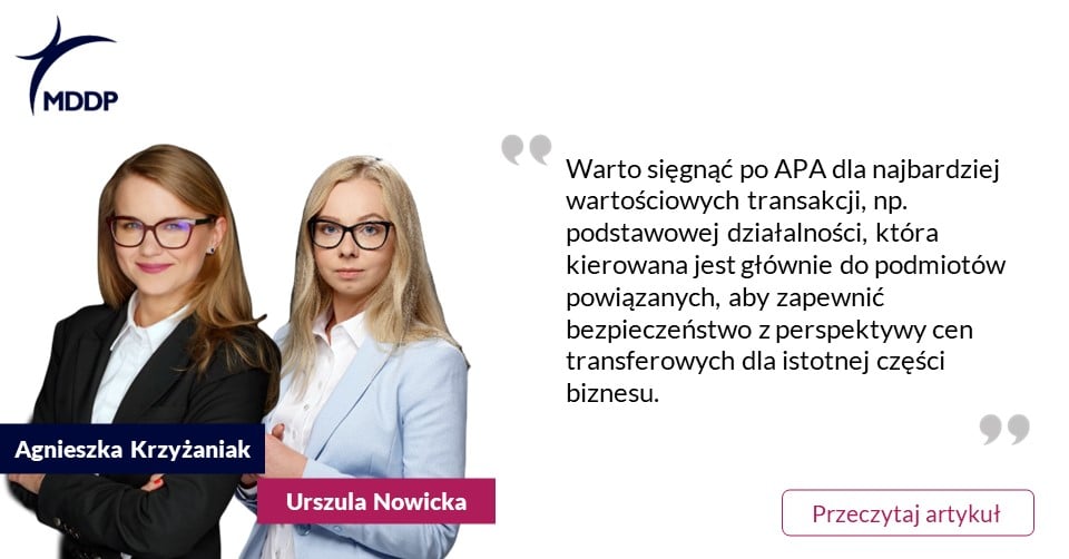 O tym jak uzyskać uprzednie porozumienie cenowe (APA) piszą w swoim artykule Agnieszka Krzyżaniak i Urszula Nowicka z Zespołu Cen Transferowych MDDP.
