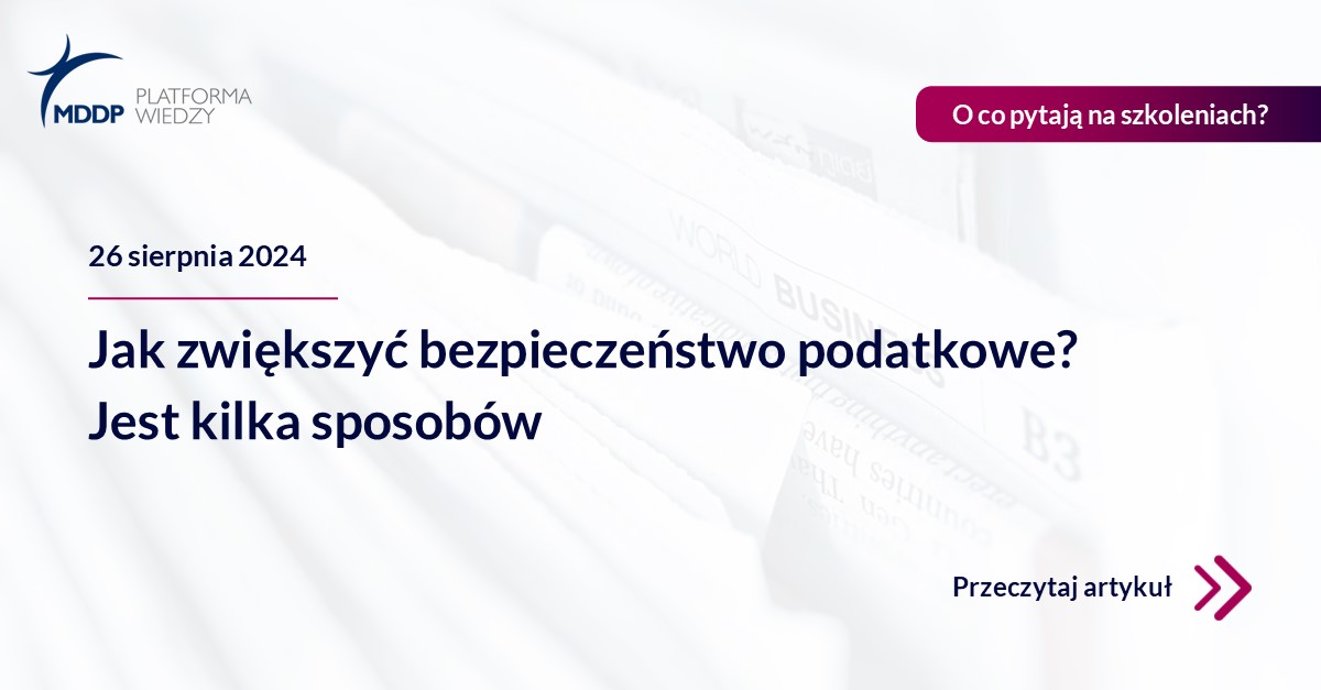 Więcej na temat bezpieczeństwa podatkowego piszą eksperci MDDP: Jakub WarniełoKarolina Piętka, którzy na co dzień – w ramach MDDP Platforma Wiedzy – dzielą się wiedzą w tym zakresie.