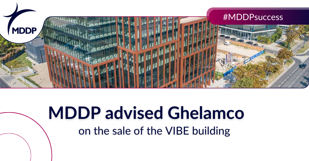 Experts from MDDP Michalik Dłuska Dziedzic i Partnerzy provided tax advisory services to Ghelamco on the sale of the VIBE building to Manova Partners. The transaction, one of the largest office deals in the CEE region in 2025, involved a modern office complex located in the centre of Warsaw, offering 15,000 sqm of office space.