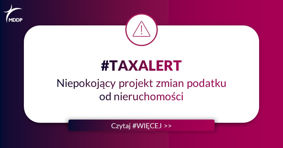 Niniejszy Tax Alert nie stanowi porady prawnej ani podatkowej. MDDP Michalik Dłuska Dziedzic i Partnerzy spółka doradztwa podatkowego spółka akcyjna nie ponosi odpowiedzialności za wykorzystanie informacji zawartych w komunikacie bez wcześniejszego zasięgnięcia opinii doradców prawnych lub podatkowych.