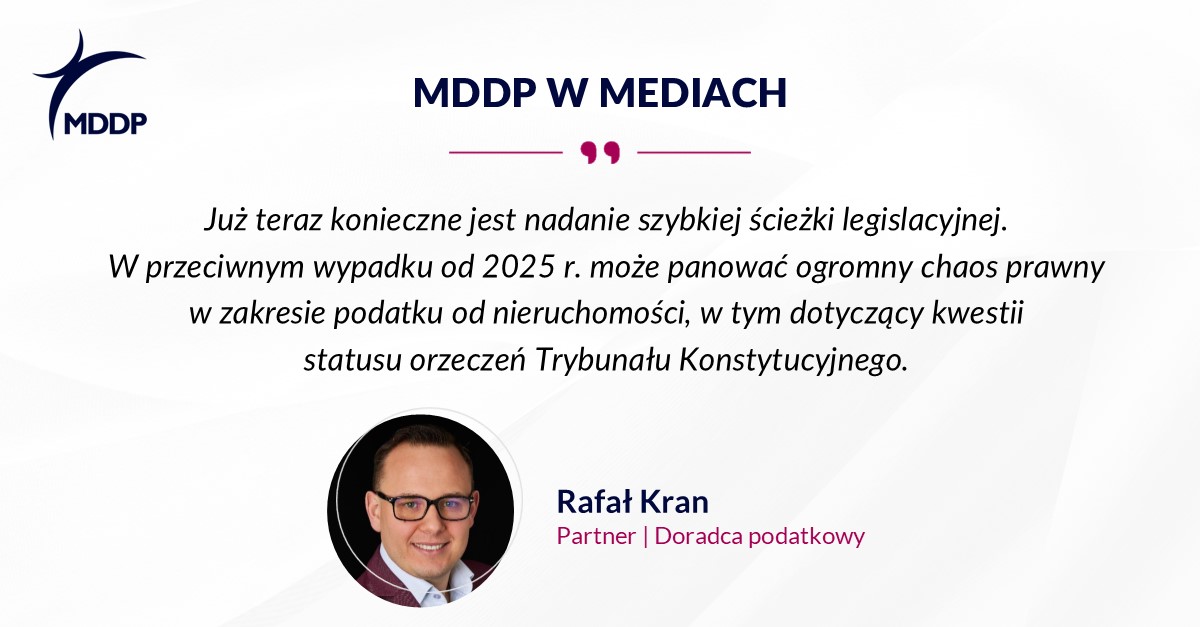 „To niewiele czasu na proces legislacyjny i już teraz konieczne jest nadanie szybkiej ścieżki legislacyjnej, a więc współpracy Sejmu, Senatu i Prezydenta. W przeciwnym wypadku od 2025 r. może panować ogromny chaos prawny w zakresie podatku od nieruchomości, w tym dotyczący kwestii statusu orzeczeń Trybunału Konstytucyjnego”.