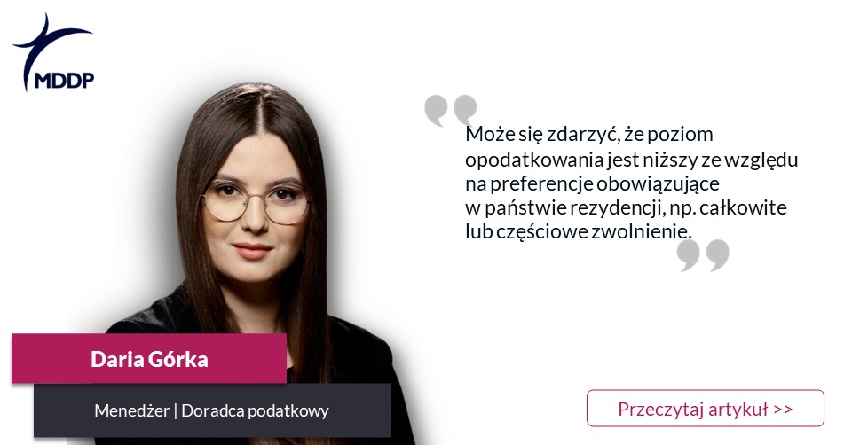 Daria Górka, menedżer, doradca podatkowy w MDDP, podkreśla: