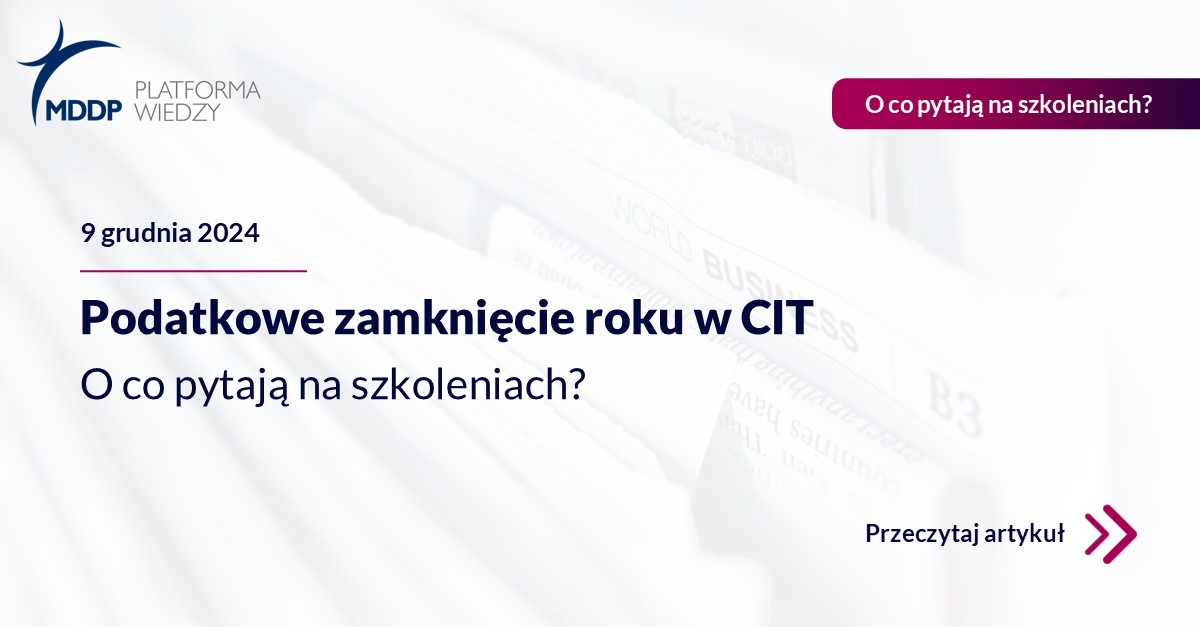 Na najważniejsze pytania w zakresie CIT odpowiadają eksperci MDDP: Justyna Bauta-Szostak, Łukasz Kupień, Bartosz Doroszuk i Konrad Medoliński, którzy na co dzień, w ramach MDDP Platforma Wiedzy, dzielą się wiedzą na ten temat. W nowym artykule na łamach Dziennika Gazety Prawnej autorzy wyjaśniają m.in.: