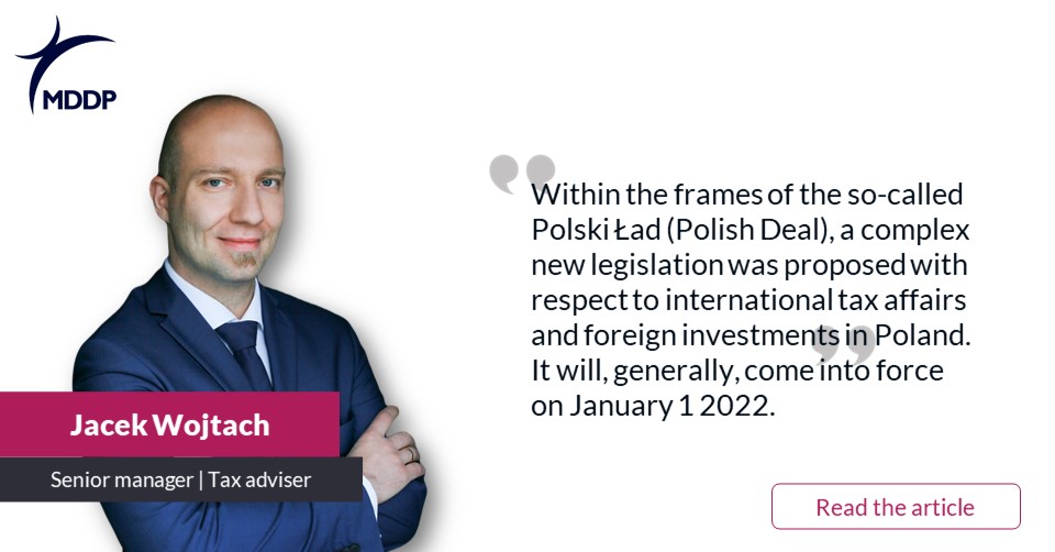 Within the frames of the so-called Polski Ład (Polish Deal), a complex new legislation was proposed with respect to international tax affairs and foreign investments in Poland. It will, generally, come into force on January 1 2022.