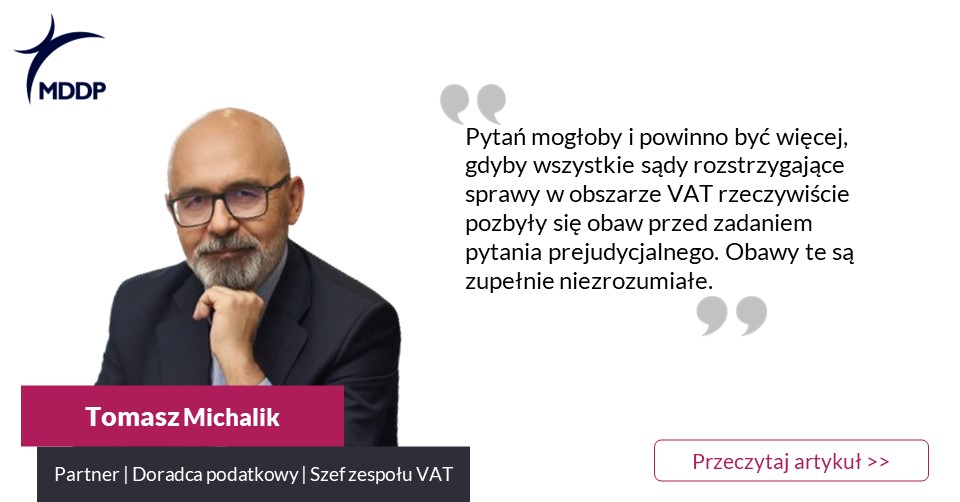 W tym kontekście Tomasz Michalik, partner, doradca podatkowy, szef zespołu VAT w MDDP zauważa: