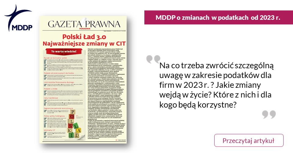 Poradnik na temat zmian w CIT przygotowali eksperci Zespołu CIT z MDDP Michalik Dłuska Dziedzic i Partnerzy, a w poradniku znalazły się takie tematy jak:
