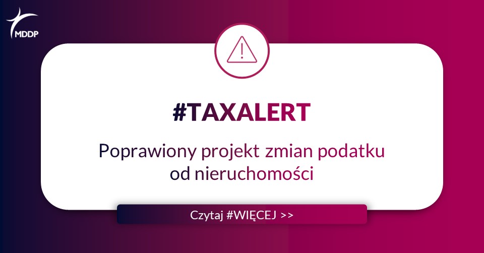 Niniejszy Tax Alert nie stanowi porady prawnej ani podatkowej. MDDP Michalik Dłuska Dziedzic i Partnerzy spółka doradztwa podatkowego spółka akcyjna nie ponosi odpowiedzialności za wykorzystanie informacji zawartych w komunikacie bez wcześniejszego zasięgnięcia opinii doradców prawnych lub podatkowych.