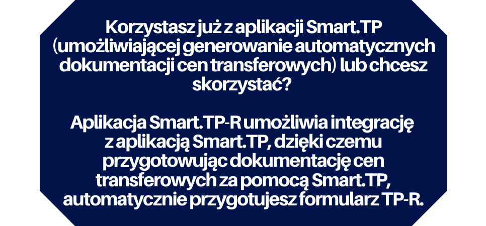 - Zidentyfikowanie i szansa na ograniczenie ryzyk z zakresu cen transferowych w oparciu o raport generowany przez aplikację Smart.TP-R.