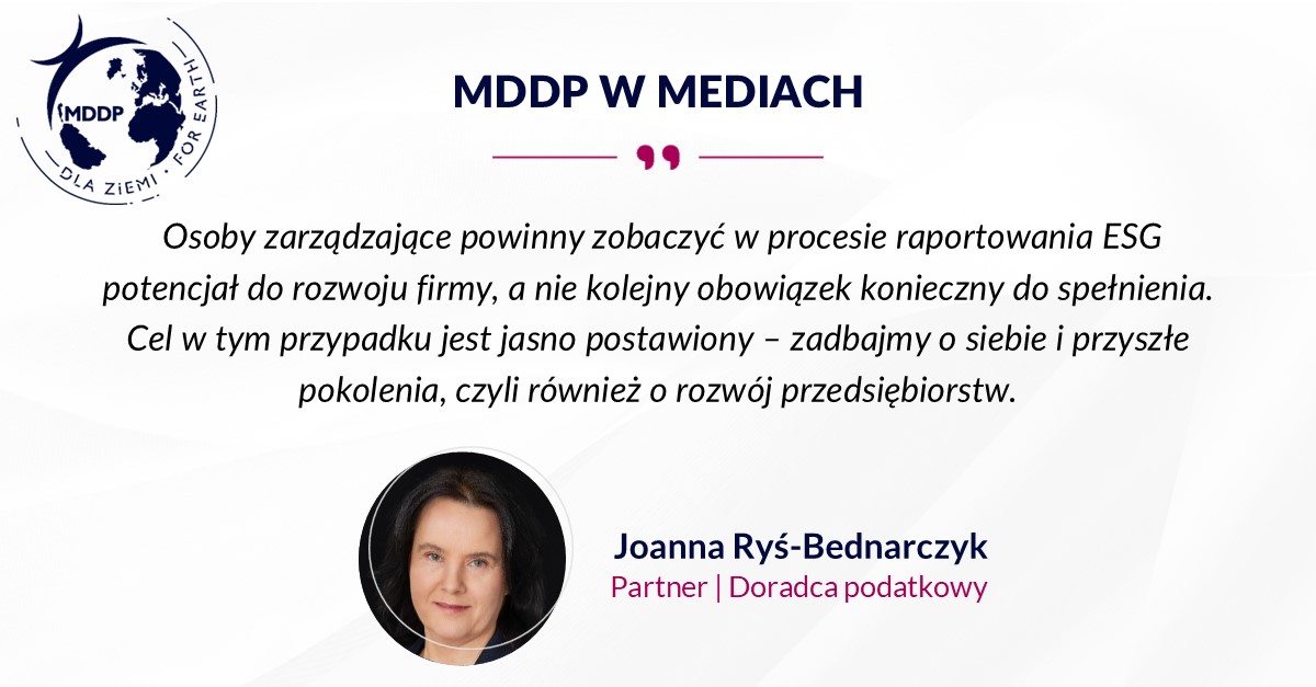 Czy wiedza o ESG jest powszechna? Na łamach Executive Magazine liderka obszaru ESG w MDDP – Joanna Ryś-Bednarczyk – odpowiada na to i wiele innych pytań związanych z tym zagadnieniem.