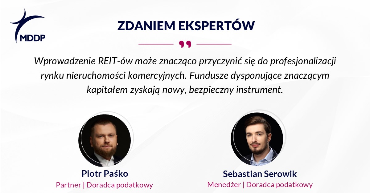„Kluczowe może okazać się zbliżenie poziomu opodatkowania REIT-ów do obecnie funkcjonujących rozwiązań dla inwestorów indywidualnych na rynku mieszkaniowym. Mogłoby to zachęcić do przekierowania części kapitału z bezpośrednich inwestycji w nieruchomości mieszkaniowe na rynek kapitałowy”.