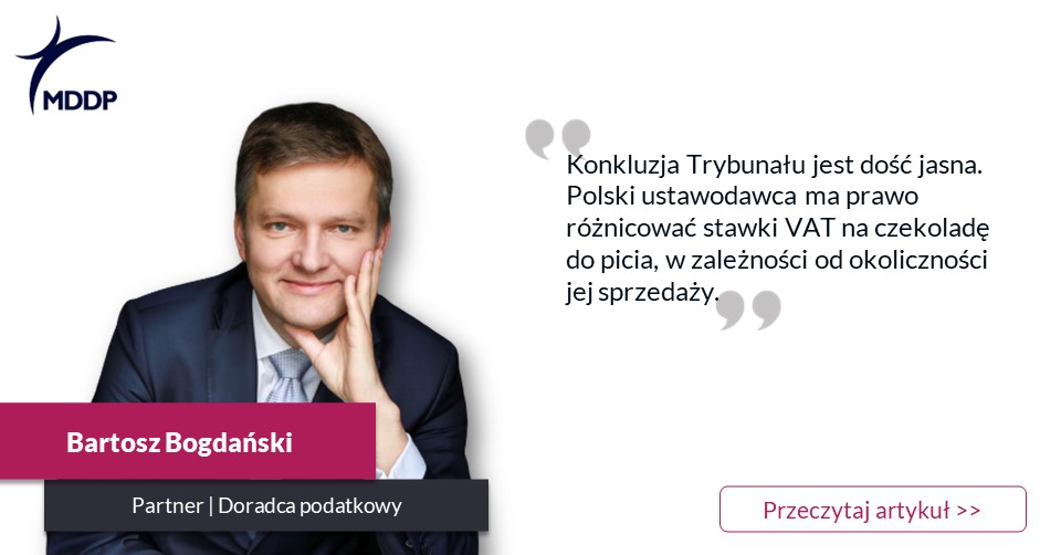 Konkluzja Trybunału jest dość jasna, polski ustawodawca ma prawo różnicować stawki VAT na czekoladę do picia, w zależności od okoliczności jej sprzedaży – zauważa Bartosz Bogdański, partner, doradca podatkowy w MDDP.
