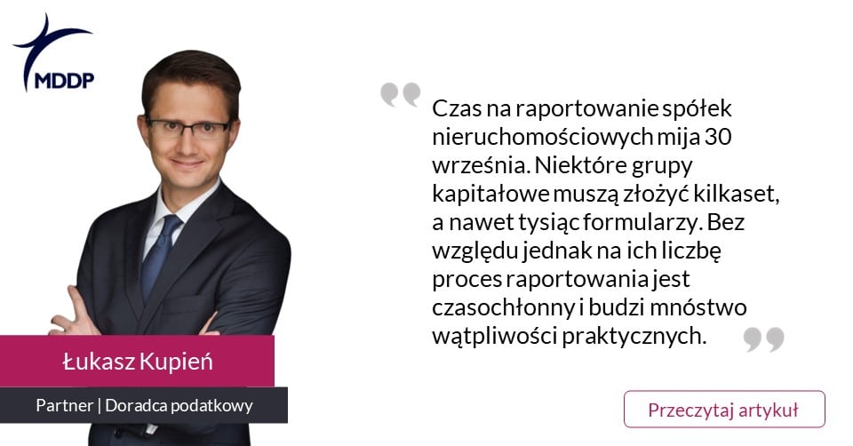 Niektóre grupy kapitałowe muszą złożyć kilkaset, a nawet tysiąc formularzy. Bez względu jednak na ich liczbę proces raportowania jest czasochłonny i kosztowny dla wszystkich. Nie ułatwiają go ani opublikowane deklaracje, ani wydłużone terminy wykonania nowych obowiązków, ani też wyjaśnienia MF. Więcej w artykule Łukasza KupieniaZespołu Nieruchomości MDDP w Dzienniku Gazecie Prawnej: LINK