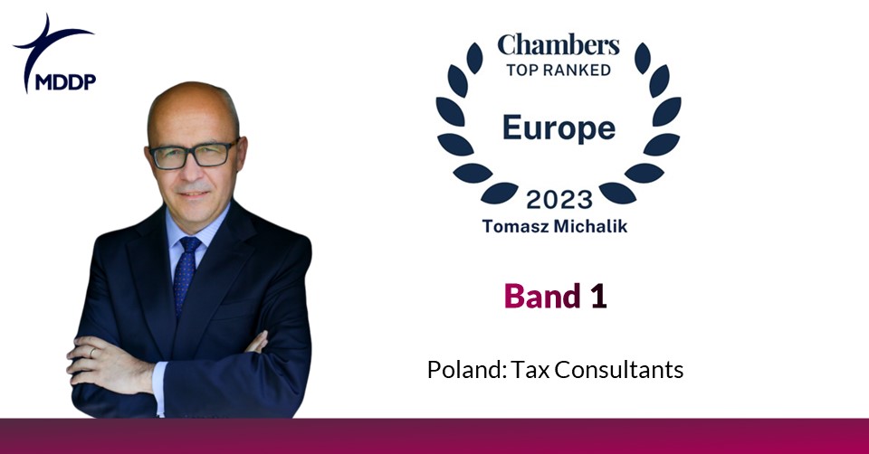 Tomasz Michalik, doradca podatkowy, partner i szef Zespołu VAT w MDDP, znalazł się na czele rankingu Chambers Europe – zajął najwyższe miejsce (Band 1) wśród doradców podatkowych w Polsce. Nasz ekspert został wyróżniony w Chambers Europe już po raz 17.