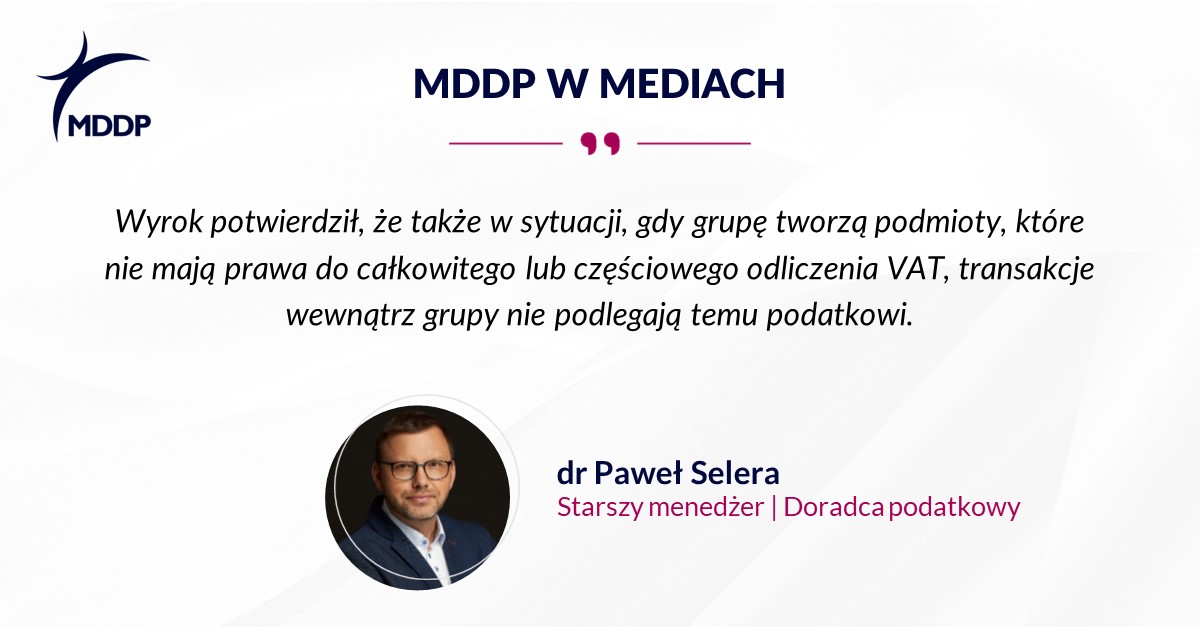 Często przyczyną tworzenia grupy jest perspektywa osiągnięcia wymiernych korzyści finansowych np. banków czy firm ubezpieczeniowych, które tylko częściowo prowadzą działalność opodatkowaną. Wyrok potwierdził, że także w sytuacji, gdy grupę tworzą podmioty, które nie mają prawa do całkowitego lub częściowego odliczenia VAT, transakcje wewnątrz grupy nie podlegają temu podatkowi.
