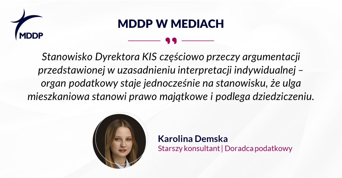 Jak tłumaczy Karolina Demska, doradca podatkowy i starszy konsultant w MDDP, stanowisko to częściowo przeczy argumentacji przedstawionej przez Dyrektora KIS w uzasadnieniu interpretacji indywidualnej: