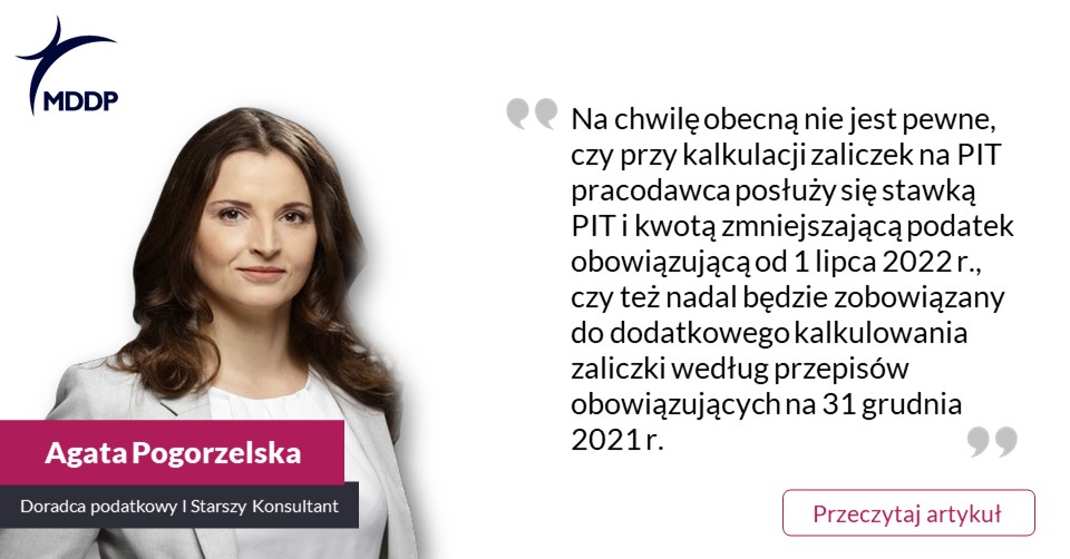 #WIĘCEJ na ten temat w artykule Agaty Pogorzelskiej z Zespołu Podatków Osobistych i Doradztwa dla Pracodawców na łamach Rzeczpospolitej w ramach cyklu MDDP dotyczącego zmian wynikających z tzw. Polskiego Ładu.