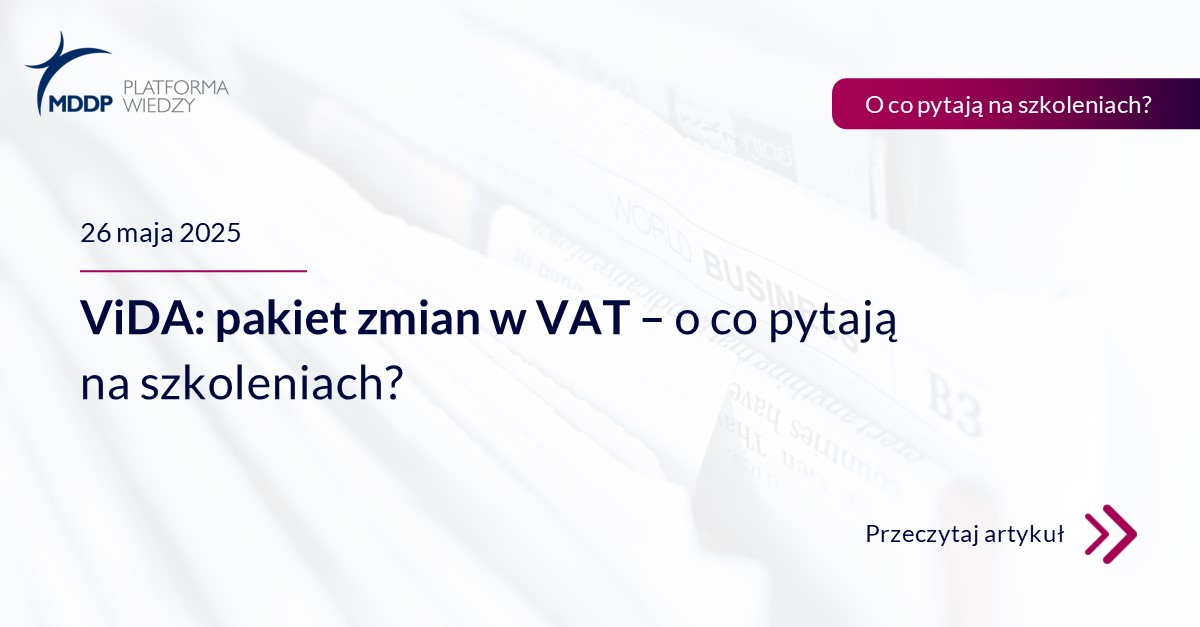Na ważne pytania dotyczące tematyki ViDA odpowiadają eksperci z zespołu VAT MDDP – Tomasz Michalik, Paweł Goś, Janina Fornalik i Marek Przybylski – którzy na co dzień w ramach MDDP Platforma Wiedzy prowadzą szkolenia w tym zakresie.