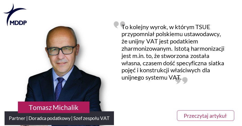Jak zauważa Tomasz Michalik, Partner, Doradca podatkowy, Szef zespołu VAT w MDDP: