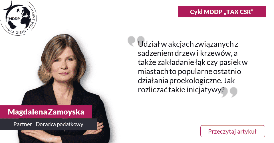 Dziś w kolejnym odcinku autorskiego cyklu ekspertów MDDP na łamach Dziennika Gazety Prawnej dotyczącego skutków podatkowych działań z zakresu CSR, analizujemy możliwe warianty rozliczeń podatkowych inicjatyw proekologicznych firm, takich jak sadzenie drzew czy zakładanie łąk kwiatowych w miastach.