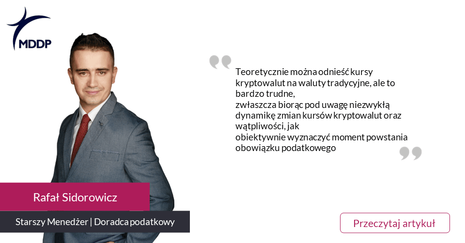 W praktyce pojawiały się problemy, jak wycenić przychód z zamiany walut wirtualnych – tłumaczy Rafał Sidorowicz, doradca podatkowy, starszy menedżer z kancelarii MDDP. – Teoretycznie można odnieść kursy kryptowalut na waluty tradycyjne, ale to bardzo trudne, zwłaszcza biorąc pod uwagę niezwykłą dynamikę zmian kursów kryptowalut oraz wątpliwości, jak obiektywnie wyznaczyć moment powstania obowiązku podatkowego – dodaje.