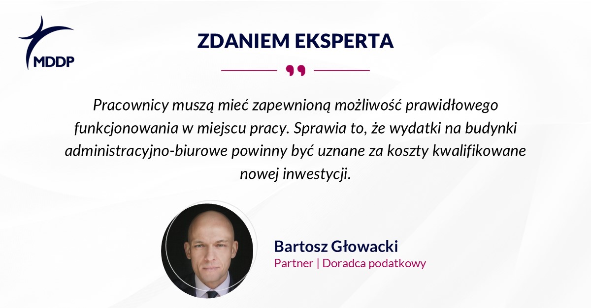 Bartosz Głowacki, partner i doradca podatkowy w MDDP, wyjaśnia, że objaśnienia dotyczące kosztów inwestycji, takich jak infrastruktura socjalna czy instalacje OZE, nie odpowiadają rzeczywistym potrzebom firm. Sąd administracyjny w wyrokach wielokrotnie podkreślał, że takie wydatki, choć nieprodukcyjne, są niezbędne do funkcjonowania inwestycji.